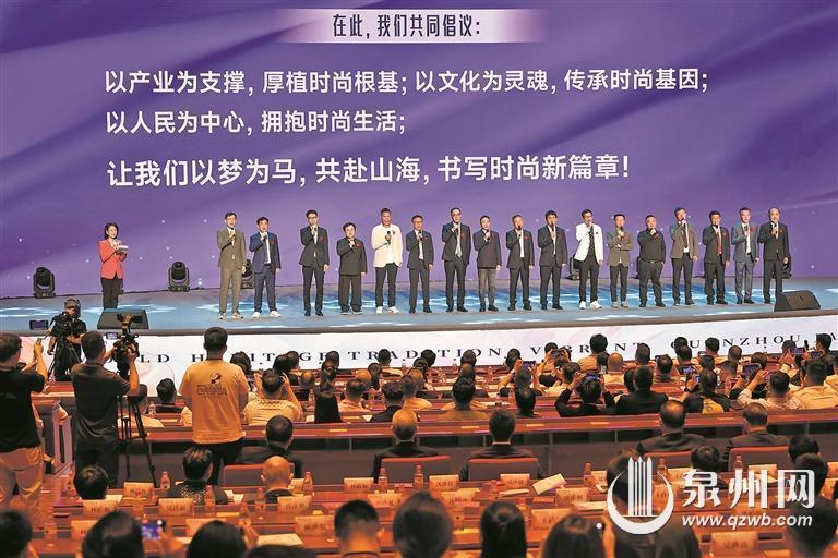 泉州时尚产业联盟主席团成员一同上台为建设时尚之都助力,向全球发布2025泉州时尚周倡议书。(融媒体记者陈起拓 摄)