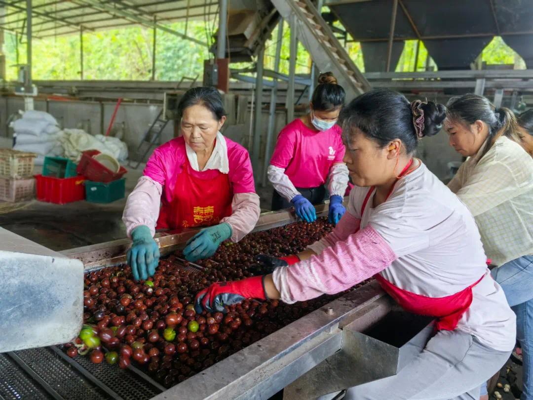 随着项目的建成投产,一条集“脱青皮→清洗→烘干→分级→包装”于一体的现代化澳洲坚果生产线正式亮相。这条生产线产能强劲,青皮果日处理能力超30吨,干果日处理能力达10吨以上。