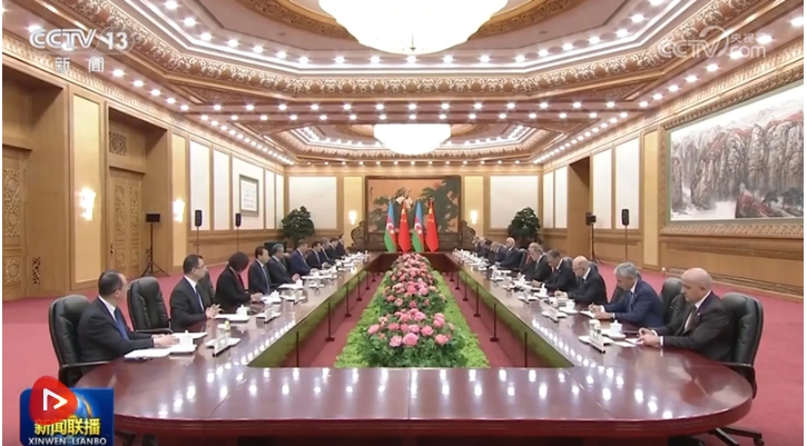 4月23日上午,国家主席习近平在北京人民大会堂同来华进行国事访问的阿塞拜疆总统阿利耶夫举行会谈。会谈后,两国元首共同签署《中华人民共和国和阿塞拜疆共和国关于建立全面战略伙伴关系的联合声明》。