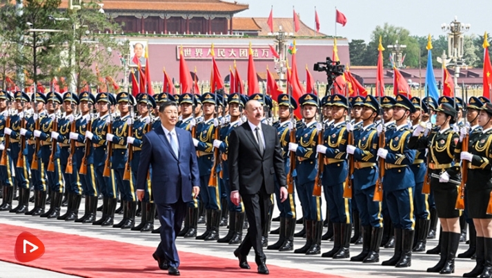 阿利耶夫抵达时,礼兵列队致敬。习近平同阿利耶夫登上检阅台,军乐团奏中阿两国国歌,天安门广场鸣放21响礼炮。阿利耶夫在习近平陪同下检阅中国人民解放军仪仗队,并观看分列式。