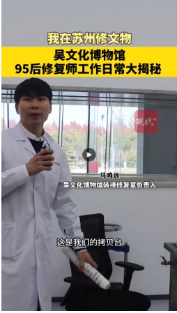 文物修复师王铭钰和马鸣远是吴文化博物馆的“文物医生”,每天在书画装裱修复室忙碌结束,他们就会在博物馆“医疗日记”里记录下当天的工作进度。