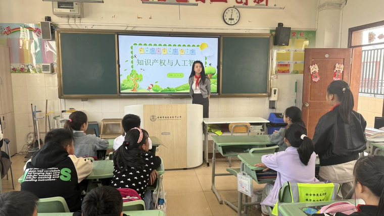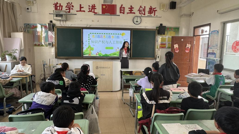 红领巾广播站的同学们利用课余时间围绕本次活动进行宣传,高年级的同学对“知识产权与人工智能相互支撑”这一核心内容开展了讨论活动,探讨人工智能技术在知识产权创造、管理和保护中的应用,以及如何加强人工智能领域的知识产权保护,激发了师生对新兴技术与知识产权交叉领域的思考与探索。