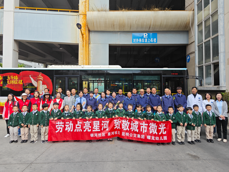 昆明信息港讯 记者周智宇 4月28日,在第135个国际劳动节即将到来之际,星河社区、银河社区携手辖区幼儿园、医疗机构走进昆明公交北部营运分公司北市区公交车场,开展“劳动点亮星河 致敬城市微光”主题活动,为坚守一线的公交驾驶员送上节日祝福。