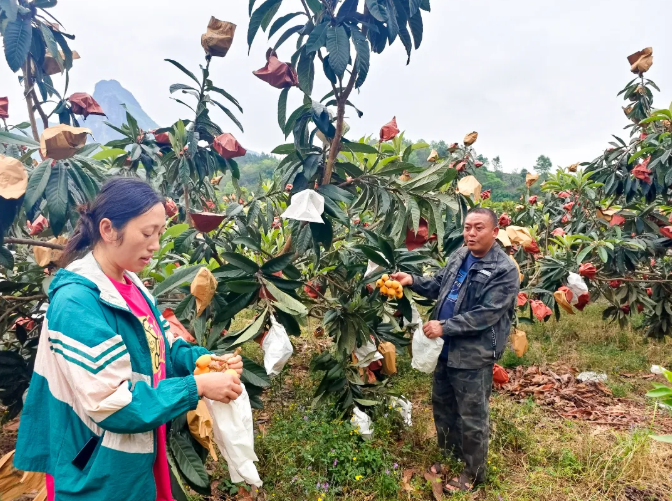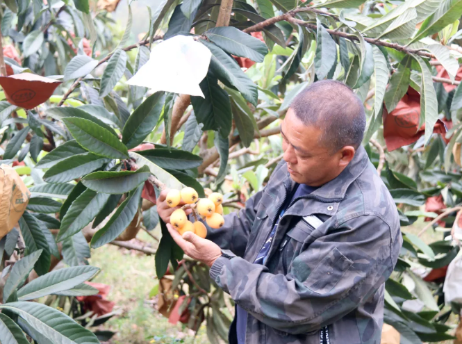 小发贵的枇杷,是被九龙河的水汽滋养大的“金果果”,温热的气候、充足的日照和天然的山泉甘露让每颗果实都攒足了糖分。种植户们采用生态种植管理模式,坚持施有机肥、人工疏果,绝不打催熟剂,在枇杷花授粉后开始筛选、套袋,避免害虫接触,让枇杷在枝头自然成熟。每年的五月,当地农业农村部门技术员还会来对枇杷进行检测,让群众买得放心、吃得舒心,从源头上确保枇杷的质量安全。