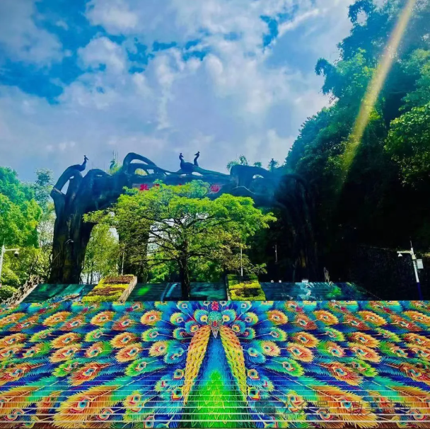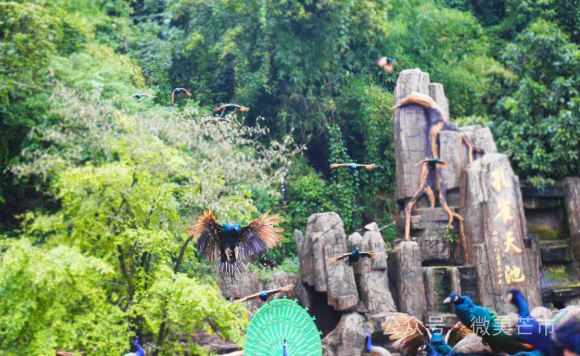 芒市孔雀谷森林公园由两大主题和五个版块构成,一个主题是孔雀,万只孔雀游走于孔雀园,在这里,市民、游客可以与孔雀亲密互动;另一个主题是原始森林生态观光游,这里森林覆盖率高达98%,负氧离子含量丰富,被誉为天然氧吧。五个版块则是千亩生态茶园、百鸟动物园、孔雀放飞、孔雀园、许愿树。进入景区后,你可以选择漫步,深入感受自然的魅力,也可以乘坐观光车轻松游览。