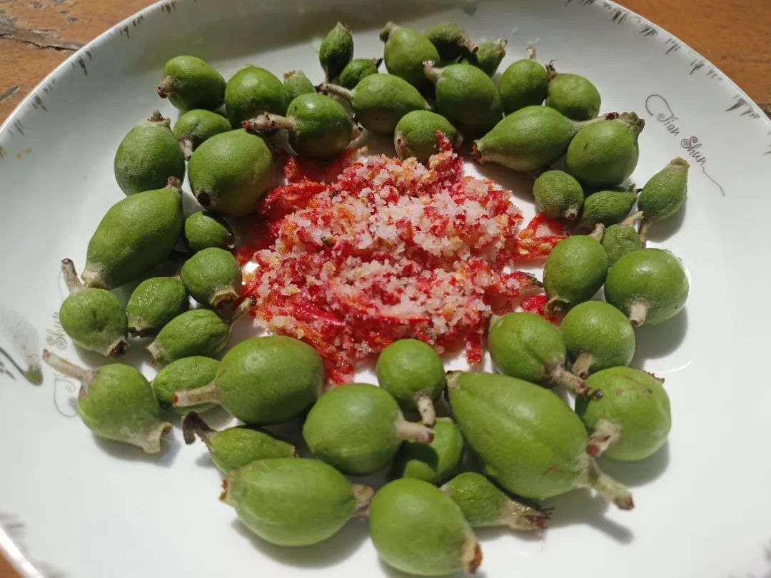 刚摘下的“多依芽”,是舌尖上的惊喜。那微微的酸涩,恰似山野的个性签名,却能在盐巴与辣椒的调和下,碰撞出奇妙的味觉火花。轻咬一口,酸脆的口感瞬间在口腔中迸发,青涩的果香裹挟着咸辣,如同一股清泉,驱散四月的燥热,让人直呼过瘾。