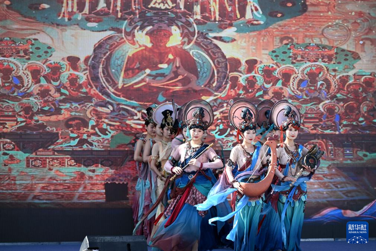 4月29日,演员在悬泉置遗址景区开园仪式上表演。 新华社发(张晓亮摄)