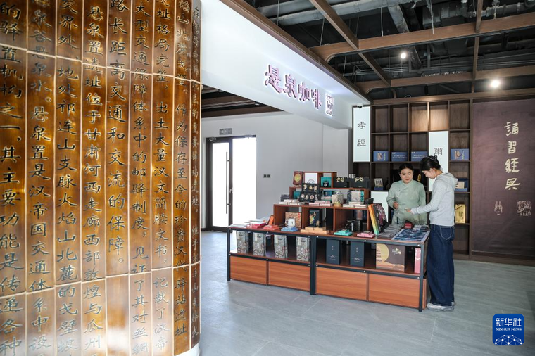 4月29日,游客在悬泉置遗址景区挑选文创产品。 新华社记者 郎兵兵 摄
