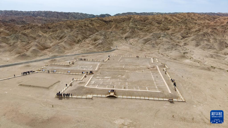 4月29日,嘉宾在世界文化遗产悬泉置遗址参观(无人机照片)。 新华社记者 郎兵兵 摄