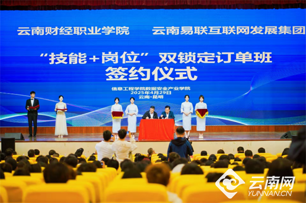 此外,云南财经职业学院信息工程学院数据安全产业学院分别与云南易联互联网发展集团、世纪恒通科技股份有限公司现场签署“订单班”协议。 本次签约将依托校企共建的“双导师”育人机制,以真实生产项目为教学载体,以企业导师为技能传承纽带,确保培养对象兼具“技术精度”与“岗位适配度”,成长为支撑产业升级发展的高素质技能人才矩阵。(云南网 记者龙彦)