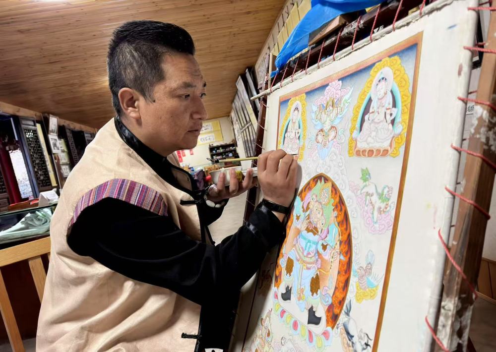 和华强在绘制东巴画。(供图)