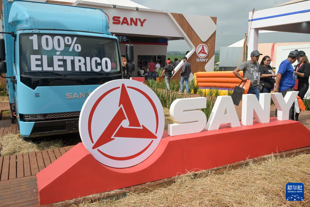 在三一重工展台上,一系列蓝色涂装的卡车格外引人注目,挡风玻璃上贴有醒目的“全电动”标识。三一重工在巴西圣保罗的经销商高级经理阿比拉谢介绍说,此次展会,三一重工带来了一整套电动交通工具与农用机械解决方案。