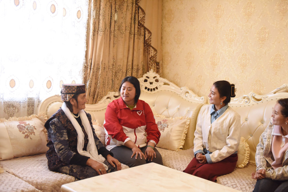 在新疆塔什库尔干塔吉克自治县,志愿者黄荟如(左二)在辖区内入户走访(2025年4月14日摄)。新华社记者 高晗 摄