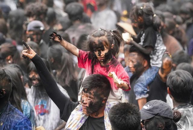 当日,“抹黑脸”狂欢活动在云南省普洱市墨江哈尼族自治县太阳广场举行,当地群众与各地游客通过相互涂抹黑脸的方式互致祝福,这一传统民俗活动承载着人们对美好生活的期许。