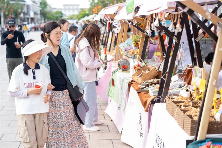 参加国潮市集、偶遇“昆韵艺匠”、邂逅浪漫艺术,在富春茶社品尝蟹黄汤包、烫干丝、三丁包等地道美食……每一位游客都沉醉其中、流连忘返。