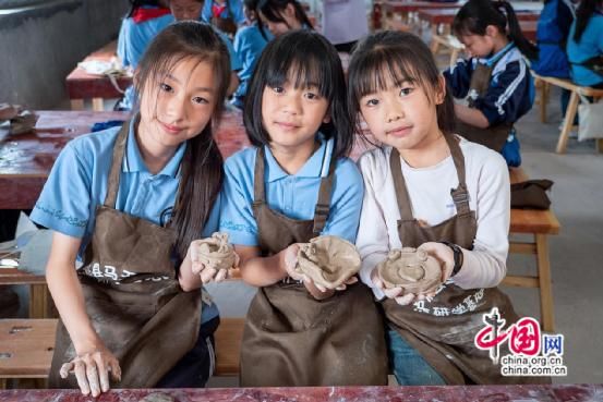 最热闹的当属马王溪村陶艺基地,沾满陶泥的小手专注地捏塑着杯盏,看谁的创意更奇特,纷纷展示自己制作的心爱作品。