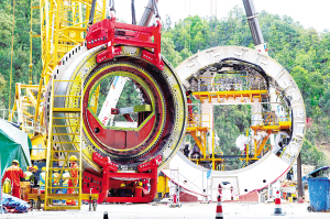 昆明信息港讯 记者杜仲莹报道 记者从省水利厅获悉,近日,滇中引水工程大理Ⅰ段香炉山隧洞6号支洞传来捷报,历经7小时13分钟连续奋战,滇中引水工程最大直径单护盾TBM“福和号”核心部件主驱动箱组装完成。作为整台TBM的“神经中枢”,主驱动箱的精准就位为TBM组装施工按下“加速键”。