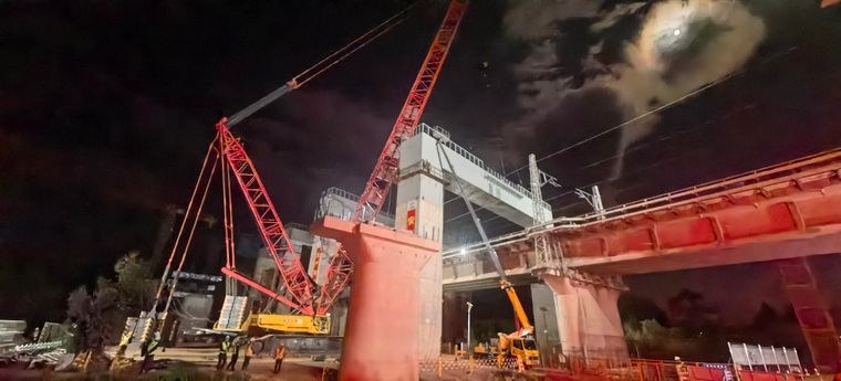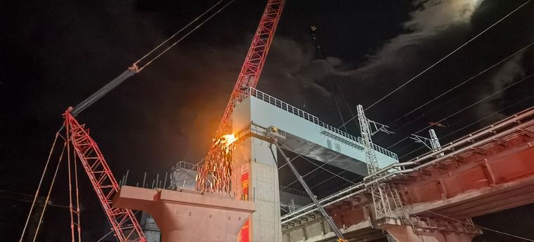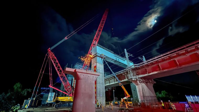 跨越运营铁路线:关凤大道双线特大桥实现毫米级精准吊装