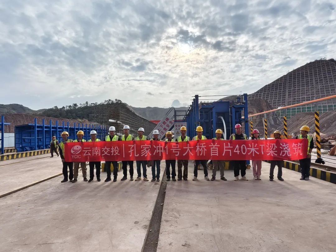 近日,宣威至会泽高速公路孔家冲1号大桥顺利完成首片40米T梁浇筑工作,此次浇筑的T梁长38.68米、高2.5米,重达123.8吨。