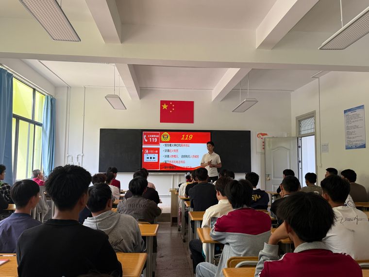 在消防安全知识讲解环节,消防宣传员对火灾预防、初期火灾扑救、火场逃生等知识进行了深入浅出地介绍。“在宿舍有没有躺床上抽烟的同学啊?”结合校园生活实际,着重讲解了宿舍用火用电安全、教学楼火灾逃生技巧等知识。“手机充电器长时间不拔会引发火灾吗?”“遇到浓烟应该如何正确逃生?” 面对学生们踊跃提出的问题,消防宣传员逐一耐心解答,并通过真实案例视频,直观展示火灾事故的严重后果,敲响安全警钟。