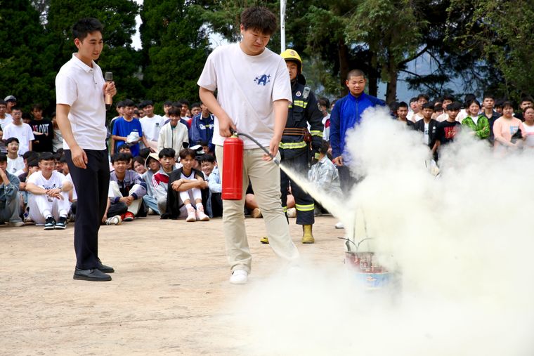 昆明信息港讯 记者周姝雅 “遇到火情如何正确使用灭火器?逃生时怎样避免踩踏事故?”5月15日下午,盘龙区消防救援大队联合云南技师学院茨坝校区,开展了一堂生动实用的地震消防“院坝课堂”,通过理论讲解和实战演练相结合的形式,为全校600余名师生送上 “沉浸式” 消防安全知识“盛宴”,将消防安全知识的种子播撒在校园的每一个角落。