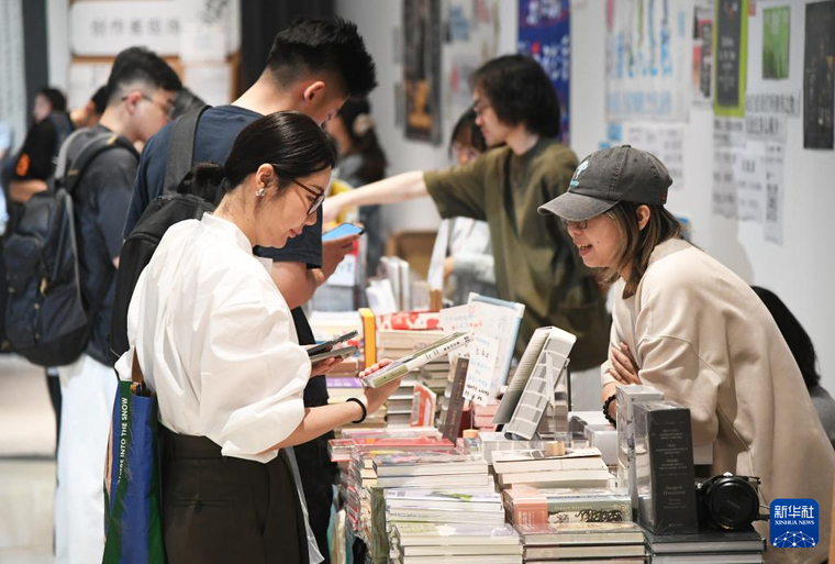 5月15日,观众在图书市集上参观。新华社记者 任超 摄