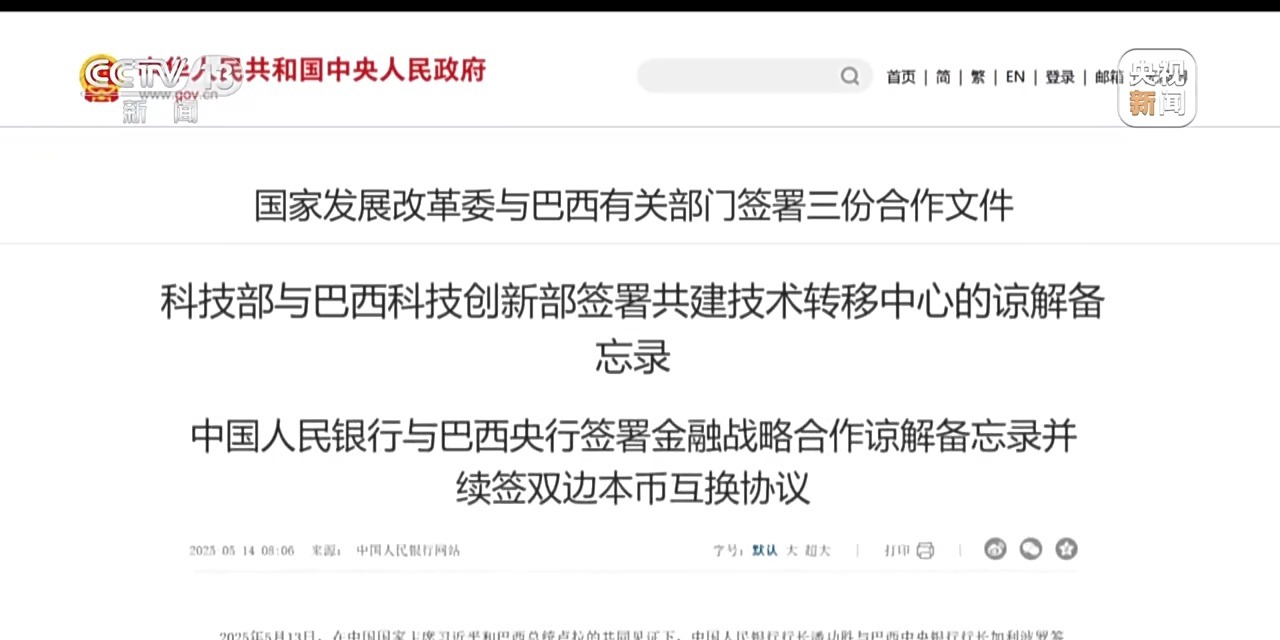卢拉此次访华,中国与巴西签署了20份合作文件,包含农业、科技、金融等多个领域。此外,两国央行签下规模达1900亿元人民币的货币互换协议,多家中国企业也在本周宣布加大对巴投资力度。一家饮品企业签下40亿元人民币的采购大单,一家外卖平台签下10亿美元投资协议、宣布进入巴西市场,一家中国车企将在巴西打造研发中心和制造基地。