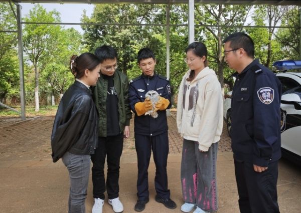 “这里有只受伤的猫头鹰!”2025年4月6日上午11时许,云南民族大学医学院学生报警,称在其学院门口绿化带旁发现一只毛茸茸的猫头鹰。接到报警后,呈贡分局环食药侦大队民辅警迅速响应,立即赶赴现场。