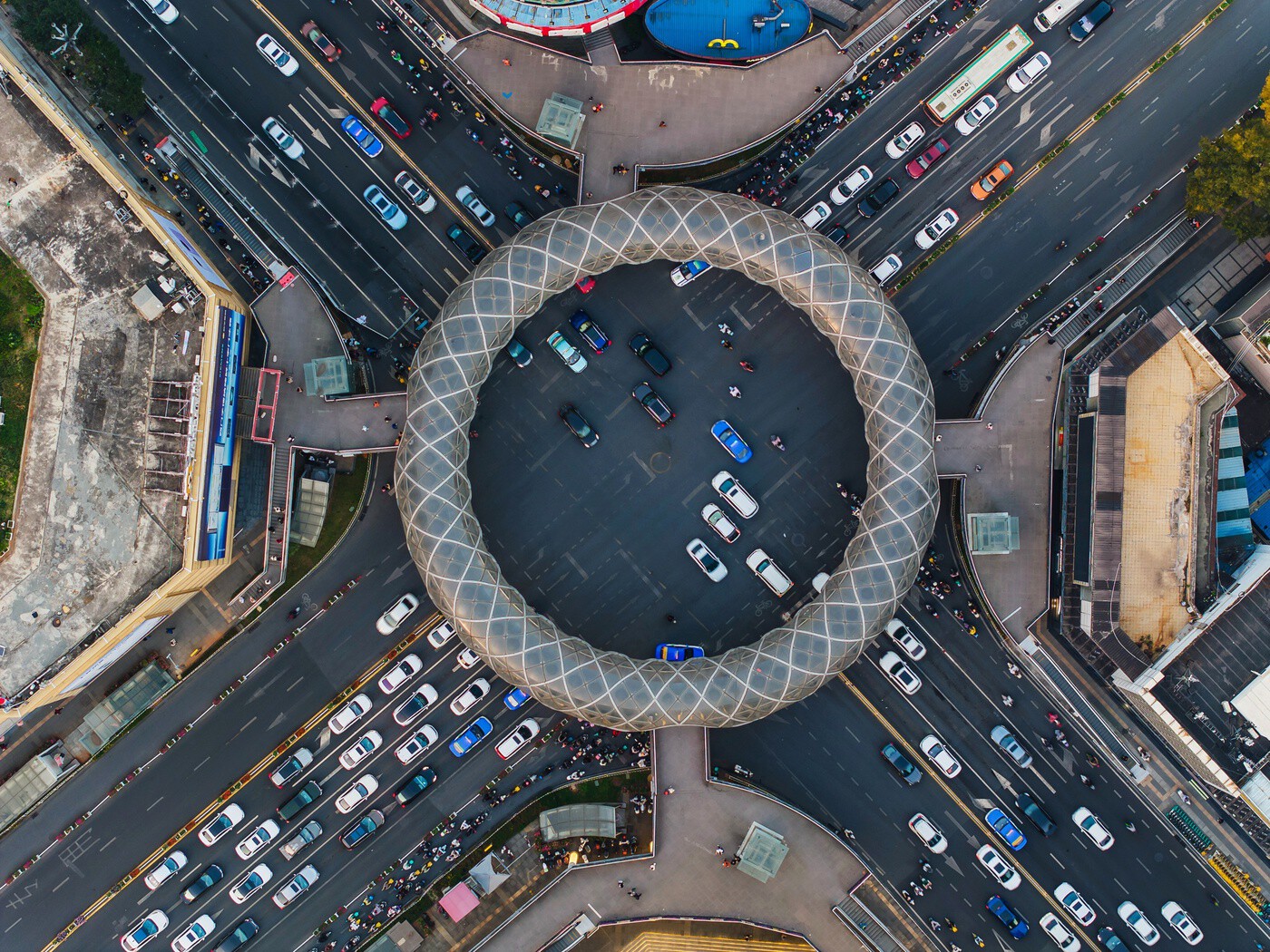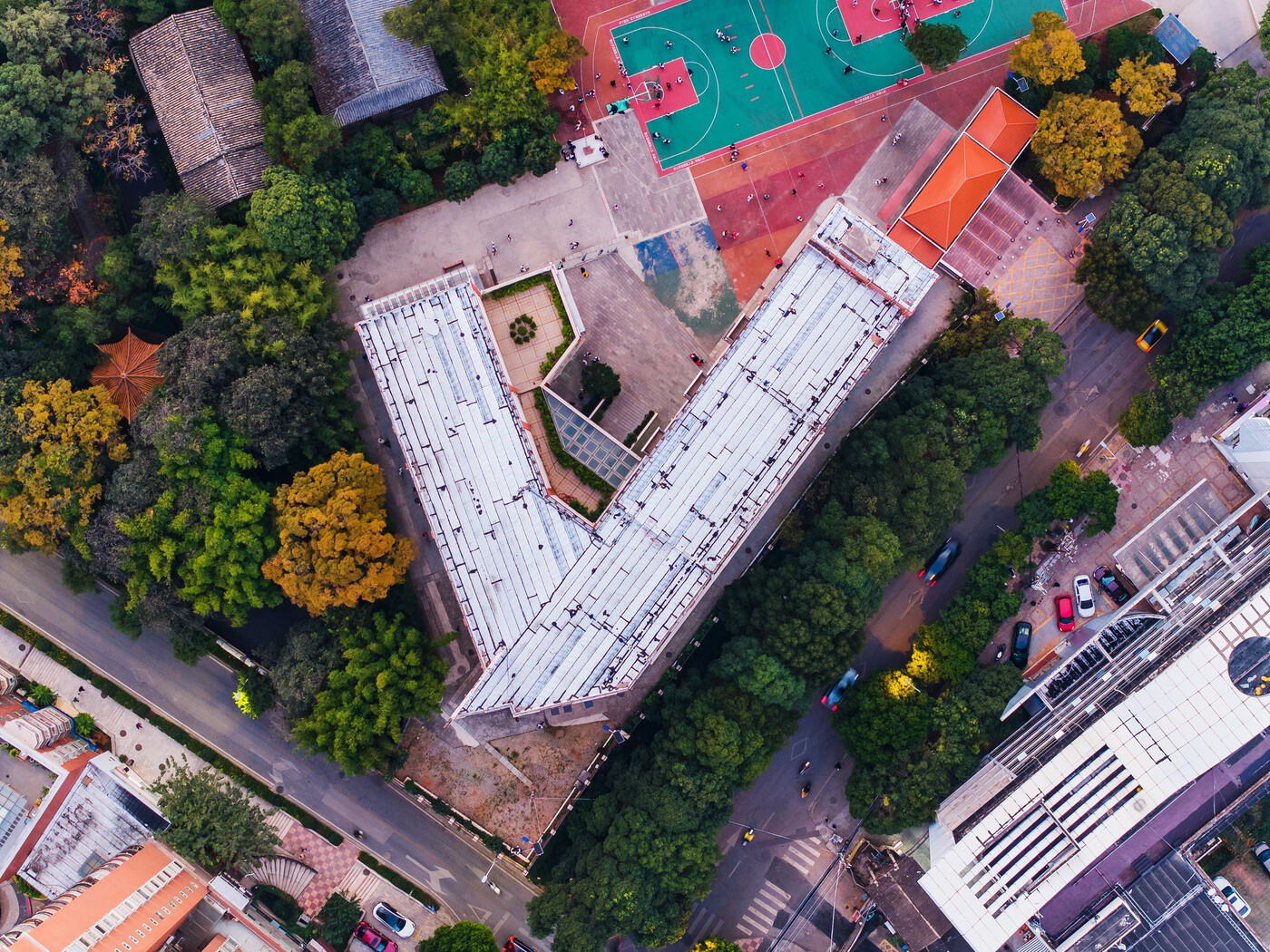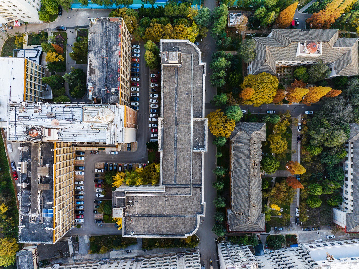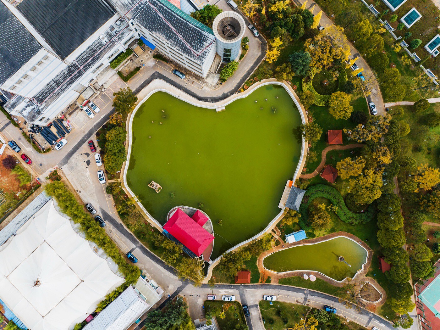 在前期规划中,从“天上视角”到地面实景都是李贞泰需要考量的方向。他利用卫星地图对昆明全域进行扫描,标记出疑似字母形态的建筑群或道路结构,每个字母备选2至3个拍摄目标。例如,“P”选定为螺蛳湾国际商贸城的停车场副楼,“Q”则取自云南民族大学的圆形体育场的俯视轮廓。