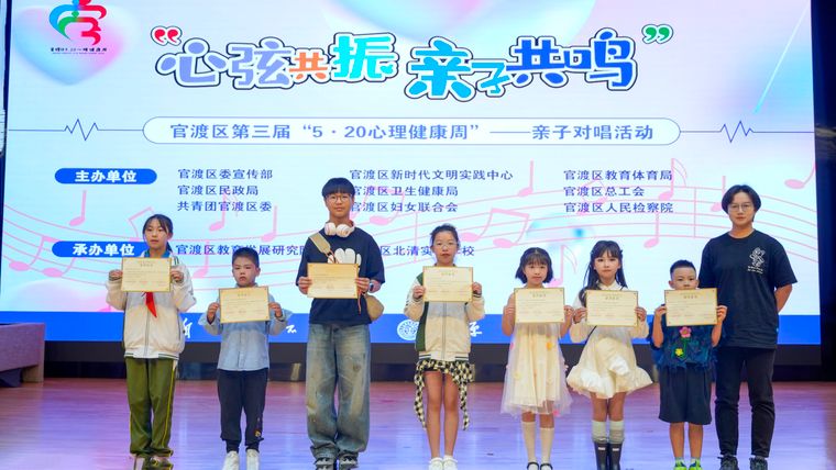 “心理健康是孩子成长的基石,而美育是润泽心灵的甘泉。此次亲子对唱活动正是将两者深度融合的创新实践,通过共同创作演绎,亲子在旋律中增进理解,在歌词里传递关爱,化解日常沟通的壁垒。音乐不仅是才艺的展示,更是情绪的表达,在创作中释放压力,在合作中建立自信,让积极心态在音符间生根发芽。”官渡区教体局团工委副书记陈国灿在致辞中表示,本次活动正是家校社协同育人的缩影。当父母与孩子携手登台,当歌声与掌声交织共鸣,见证的不仅是才艺的展示,更是教育合力的凝聚。