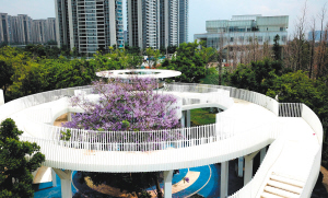 城市小游园里,一株蓝花楹一座桥就是一幅画。
