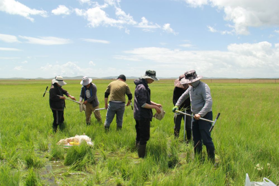 2022年8月,实验团队在青藏高原东部高寒沼泽湿地进行土壤采样。(受访者供图)