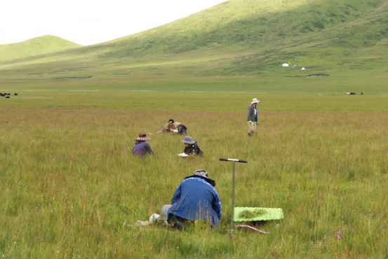 2021年8月,实验团队在青藏高原东部高寒草甸进行植物群落调查研究。(受访者供图)
