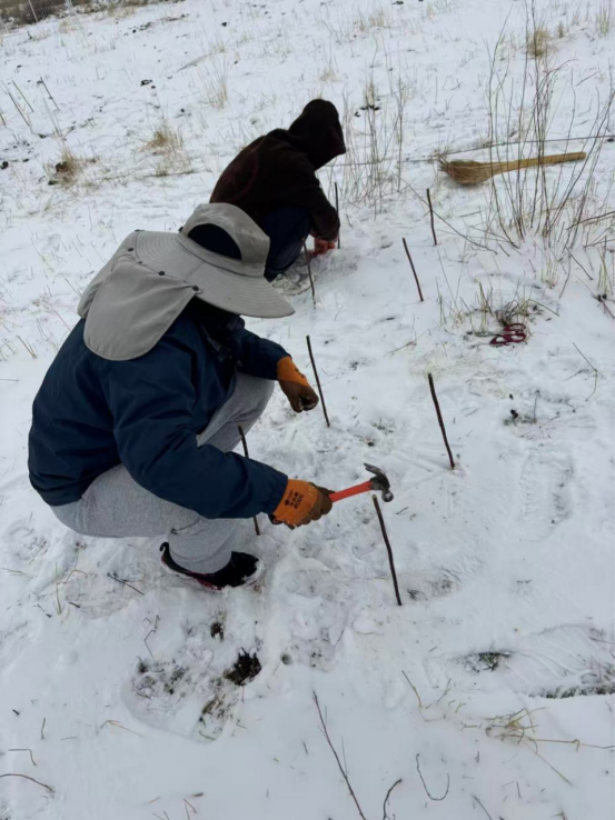 2025年4月,实验团队在青藏高原东部设置长久观测的样方框。(受访者供图)