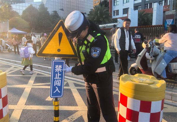 大队与云南大学等高校建立长效机制,在校内设立校园交通综合整治办公室和交管服务便民窗口,开展联合工作。设施提质,提升防护能力。针对云南师范大学附属小学呈贡校区等学校,上放学高峰时段停车集中的问题,社区交警推出了“防撞沙桶+反光锥桶+‘禁止闯入’警示牌”的安全防护“全家桶”,实现车辆顺次缓行,保障师生安全。疏导增效,提升通行效率。为提高上放学高峰时段的校外道路通行效率,社区交警教会老师、家长和安保人员等群体科学指挥,协同交警维护交通秩序,提升通行效率。