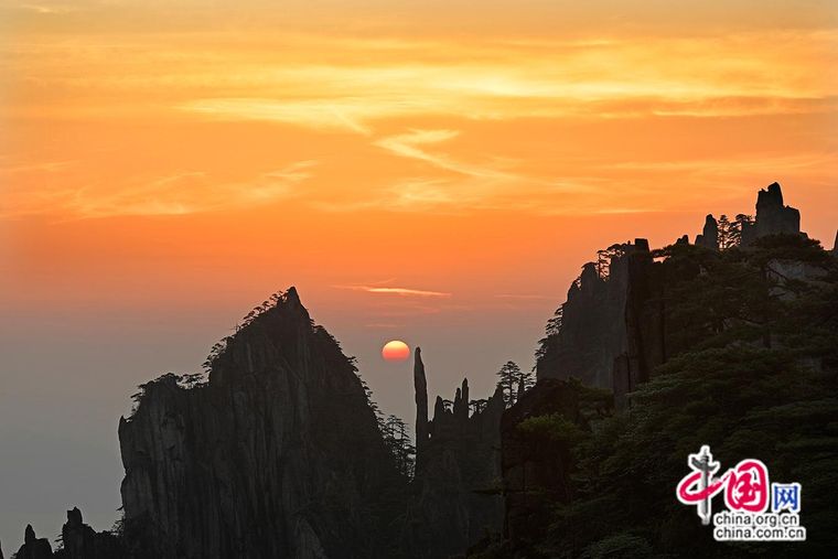 1、特定的时间和特定的位置,每年的5月下旬和7月下旬,拍摄地点始信峰的竖琴松下方观景台。