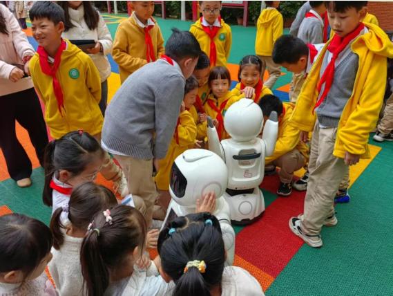 机器人展示区里,形态各异、功能多样的机器人吸引了众多学生驻足。有的机器人能灵活地进行舞蹈表演,动作精准、节奏感十足;有的则具备智能对话功能,与孩子们你一言我一语地交流着,解答他们对科技的疑问。