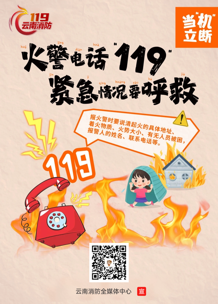 十一、如遇火灾不要惊慌,第一时间拨打119报警,用湿毛巾捂住口鼻,匍匐、弯腰迅速撤离,切不可贪恋财物贻误自救逃生时机。大火封门,可将拖把、毛巾或衣物床单浸湿,堵塞门缝,呼救待援。身上着火可就地打滚,或用衣物压灭火苗,切不能带火逃窜。