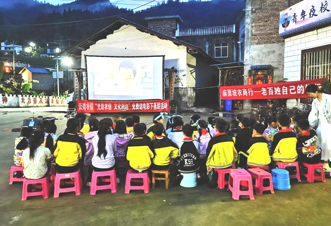 在云南省委宣传部和云南省电影局的指导支持下,“光影农信·文化润边”送电影下基层活动计划依托云南农信长期深耕边境县(市)的网点、人员优势,利用当地250余个农信乡镇网点开展千场电影放映,将《一点就到家》《我本是高山》《云下的日子》《我和我的父辈》《流浪地球》等涵盖爱国主义、民族团结、乡村振兴等主题的优质影片送进边境村寨、国门口岸、学校社区,用光影点亮边境乡村的夜晚,把优质的文化服务送到群众身边,有效丰富当地群众和农信基层职工精神文化生活。