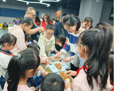 端午文化小课堂结合知识问答环节,以寓教于乐的方式普及了端午节的起源与习俗,让孩子们在轻松的氛围中感受传统文化的魅力。手工制作体验区更是热闹非凡,艾草香囊、青团、五彩珠串等非遗项目吸引了众多家庭参与。家长与孩子共同动手,将民俗寓意融入创意实践,既锻炼了动手能力,又加深了对传统文化的理解。活动最后,全体参与家庭合影留念,回顾精彩瞬间,为嘉年华画上了圆满的句号。
