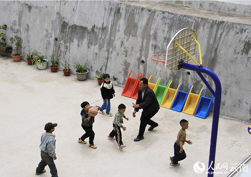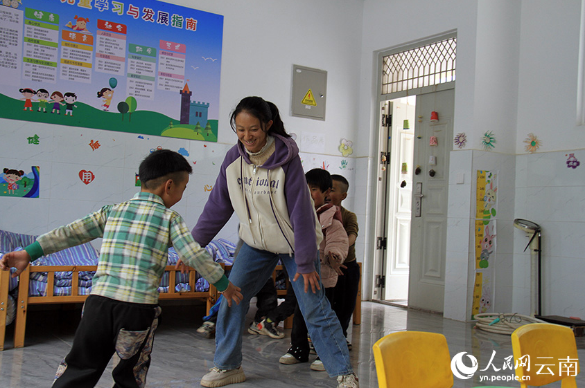 何玉芬陪孩子们玩游戏。人民网记者 程浩摄
