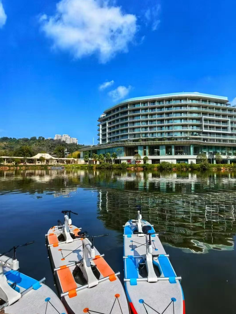 在安宁康养旅居的版图上,玉龙湾康谷是生态度假综合体的典范。2007年开发至今,这座依万亩湖山而建、占地6800亩的复合型康养综合体,已形成旅居住宿、健康管理、亲子成长、节庆文化、生态运动等多维业态的闭环生态。在这里,住客既能体验皮划艇的刺激,也能在山林间晨跑呼吸新鲜氧气,还可以参与亲子研学、森林疗愈等特色活动。从春天的花朝节,夏天的龙舟赛、泼水节,秋日的渔获节,到冬日的温泉疗愈,这里的一年,被时间划分成仪式感十足的 “四季生活”。