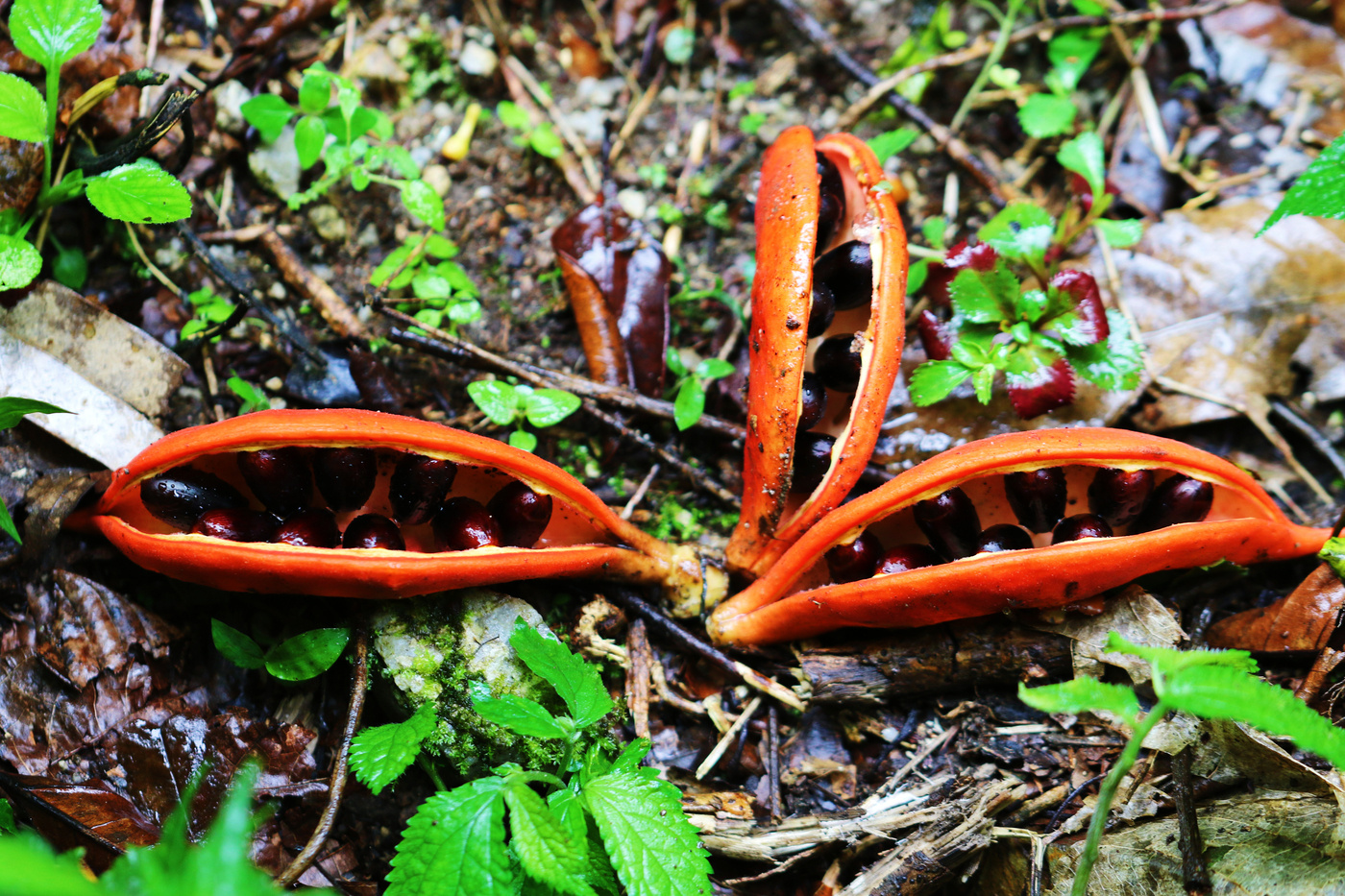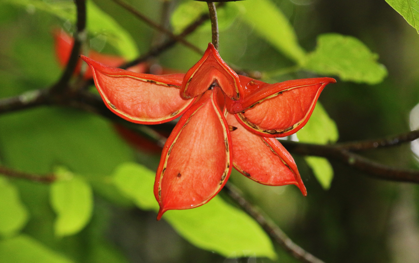熟透裂开的大叶苹婆果荚(淡红色)郁云江 摄