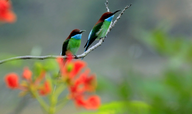 进入夏季,每天清晨8点,成群结队的栗喉蜂虎早早占据了元江河谷两岸的沙壁,有的在枝头“谈情说爱”,有的正装修着自己的新家,还有的则展翅捕食昆虫,一派繁忙景象。