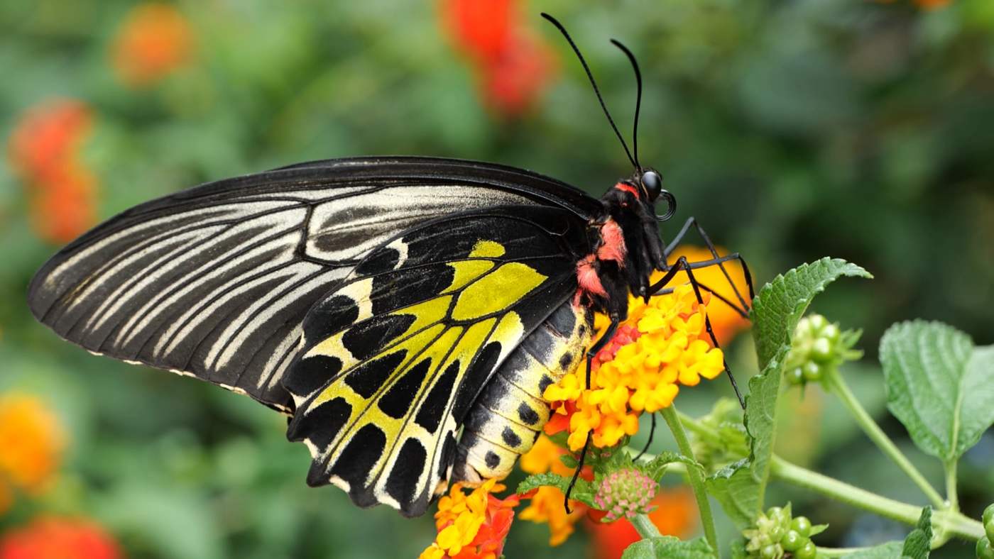 “我是金裳凤蝶,是国家二级保护动物,也是中国目前已知的最大的蝴蝶。羽化成蝶后翅展可达12至15厘米。雄蝶后翅的金黄色,在阳光下会呈现出珍珠般的光彩,随着光线角度的变化,有青、绿、紫色等不同颜色变幻。”
