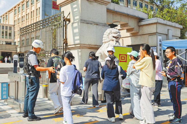 记者在昆明市区的几个考点看到,考生们在家长的陪同下,携带身份证、准考证前往考场提前踩点,熟悉周边环境及交通状况。