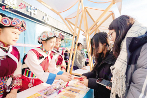 游客购买云南特色产品。资料图