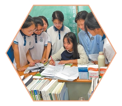 北京师范大学“优师计划”师范生张然(中)在实习时为学生讲解辅导。北京师范大学供图