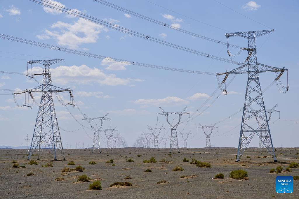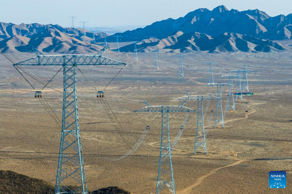 This marks China's third major project to transmit electricity from energy-rich Xinjiang Uygur Autonomous Region to other parts of the country. (Photo by Zhang Lingjun/Xinhua)