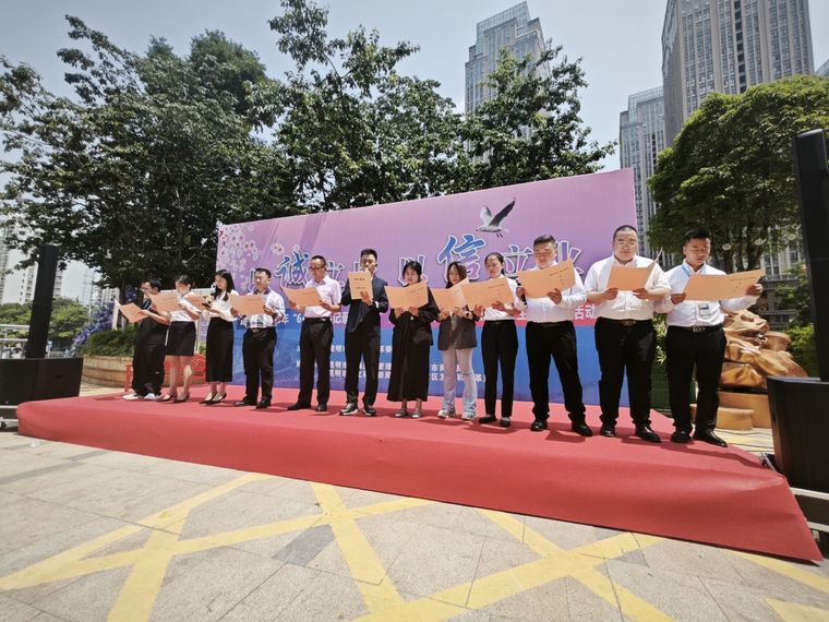 活动现场,昆明市发展改革委相关负责人发起“以诚促商、以信惠民”倡议,主张弘扬诚信文化,引导经营主体恪守契约精神、依法诚信经营,倡导市民群众增强诚信意识、珍爱信用记录,构建“知信、用信、守信”的浓厚社会氛围。